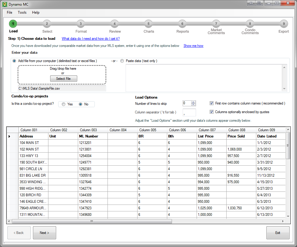 - No need to clean your data files prior to loading. Dynamo MC™ can find the columns it needs regardless of the order in your data. You can also tell Dynamo MC™ to ignore any rows you consider invalid without having to edit your data in Excel.