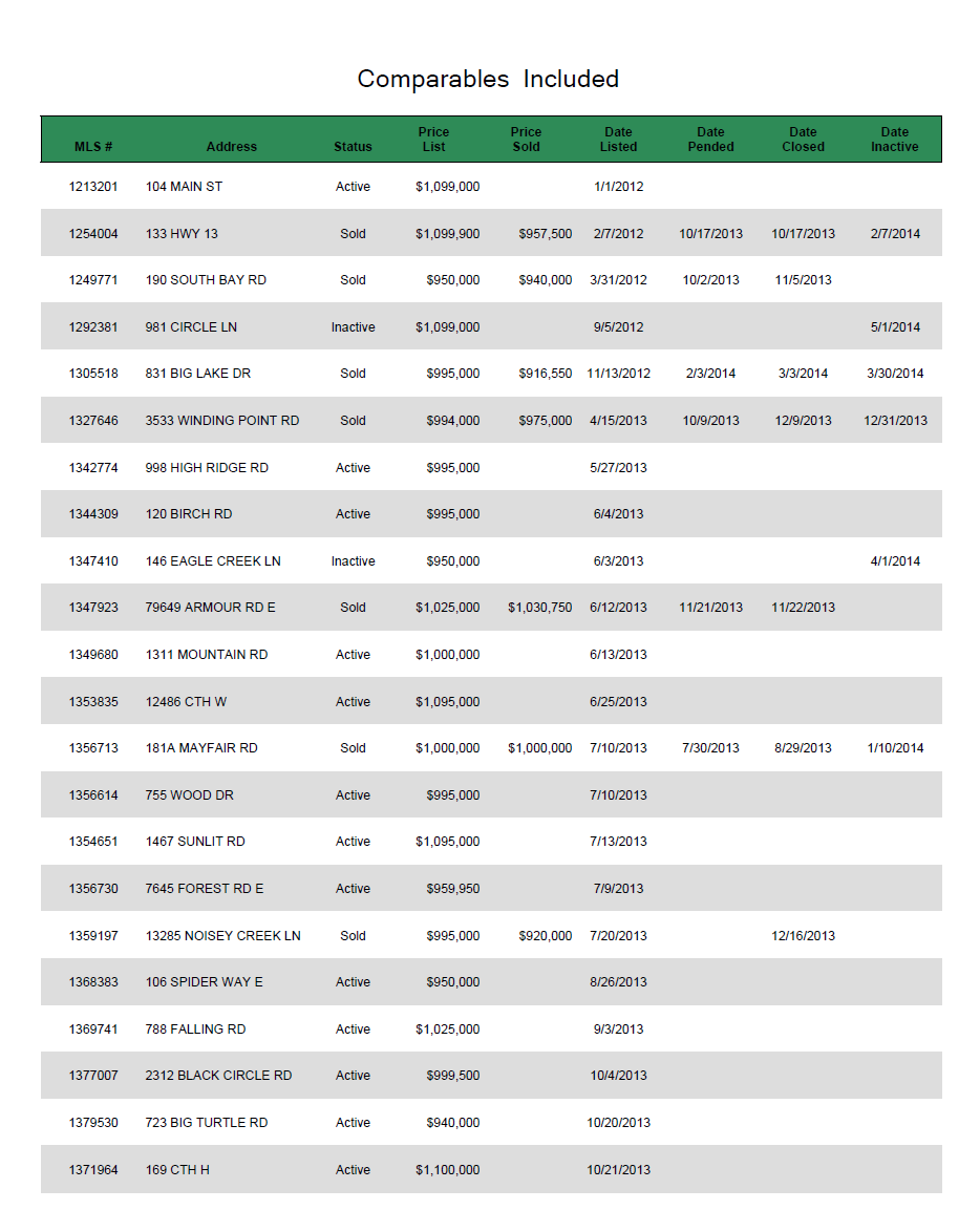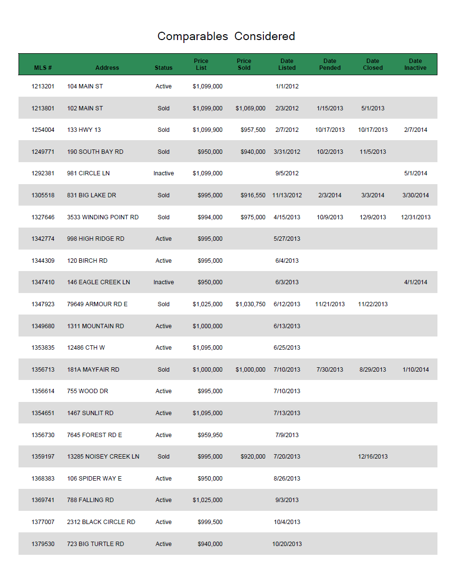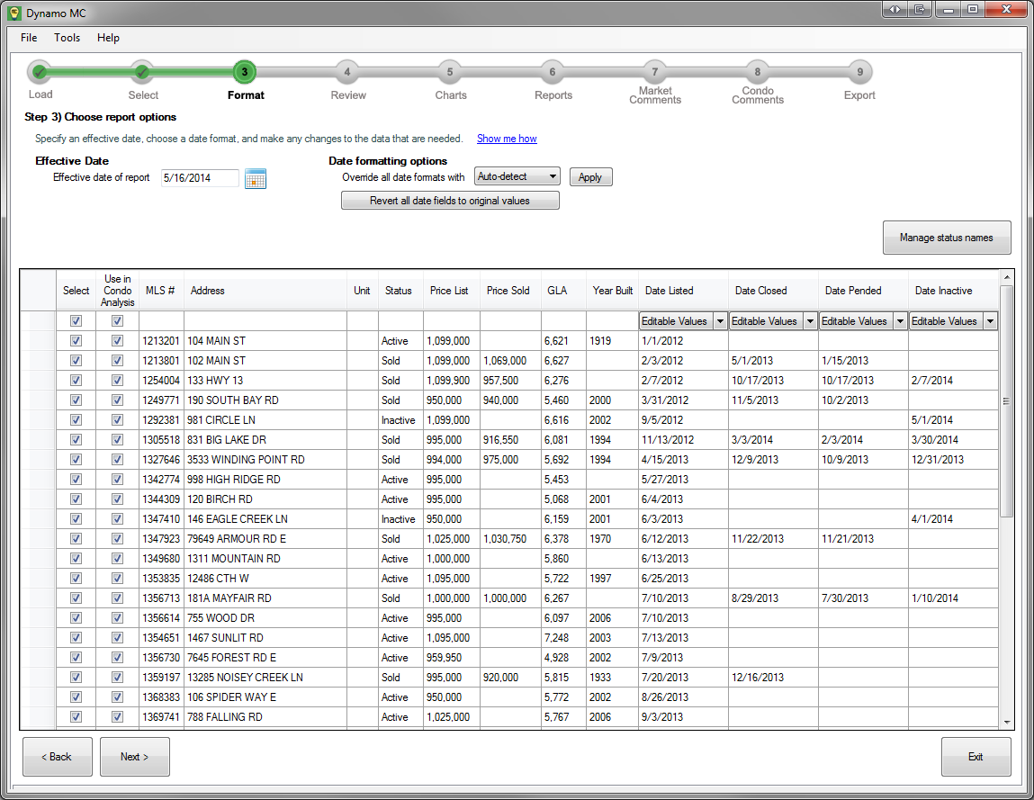 - Recognizes all major statuses (Active, Sold, Pending, and Inactive). Most other solutions ignore inactivated listings, but Dynamo MC™ can be consider these as active listings in in time periods in which they were active. This means that you will have a more complete picture of the market, and may even have more comparable listings available for analysis on difficult assignments.