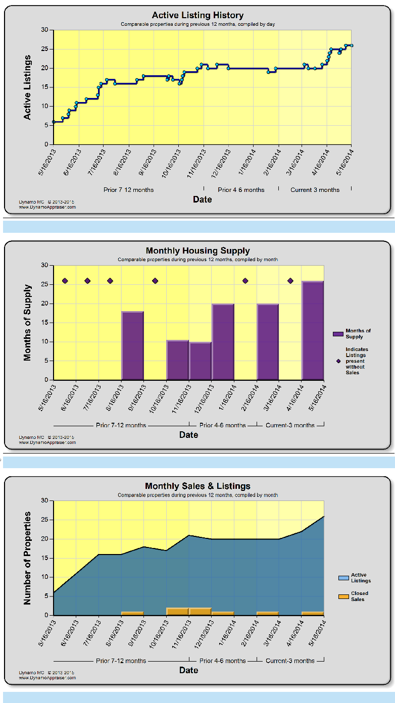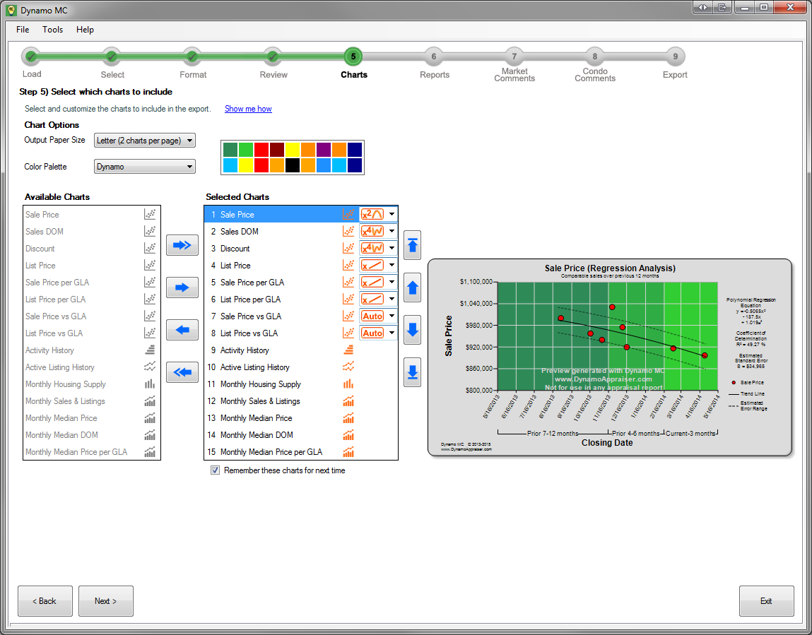 - Includes Dynamic Charts. Dynamo MC™ can generate over a dozen intriguing charts that you can use to impress your clients and tell a story about your market. These are all created automatically, so you get an added bonus that makes your reports look better than your competitors without having to do any extra work.
