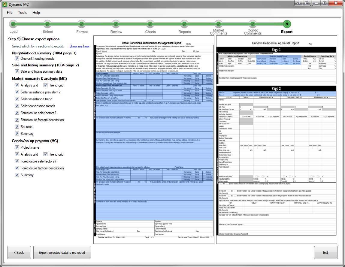Dynamo MC™ is a step-by-step MLS import tool that fully automates the completion of the Fannie Mae 1004MC form and generates impressive charts and reports for your appraisals.